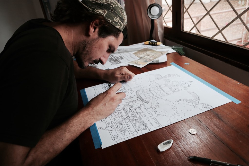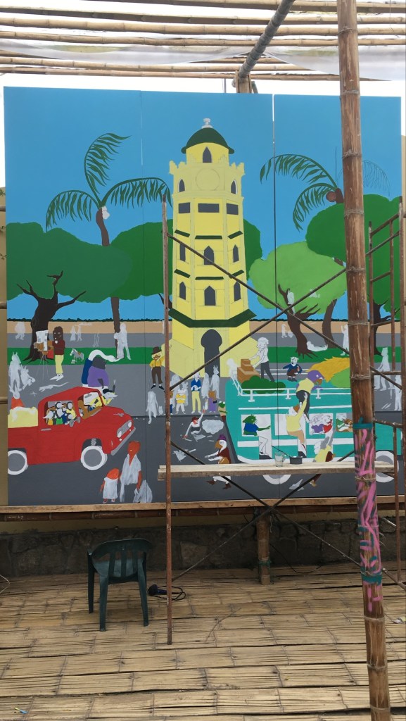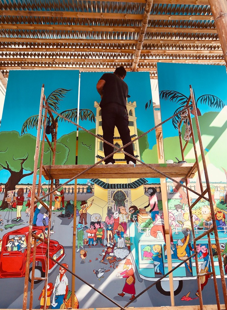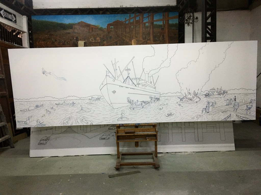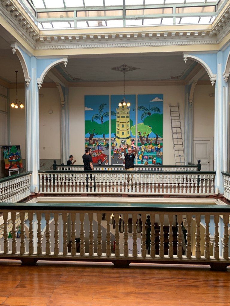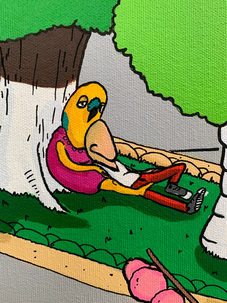 Ciudad Manglar holds together stories of commonplace encounters that shape public life in Guayaquil. The collection magnifies the multiple, often contradictory, characters of the city – their dress, customs, attitudes, narratives and how their subjective qualities bump up against each other and perform in ironic ways. A series of visual scenarios, the collection inherits and recharacterizes the tensioned socio-political undercurrents of Guayaquil by paying attention to the often overlooked minor details of this place. With bright color and humor, the paintings enliven the contrasting realities that shape Guayaquil through aesthetic situations that are at once playful, perverse and particular.