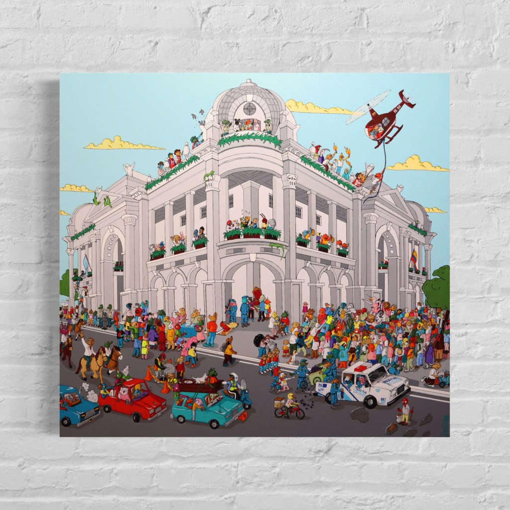 El Municipio. (2023) Acrilico sobre lienzo / Acrylic on canvas120 x 130 x 3 cm. / 47,2 x 51,18 inches SOLD