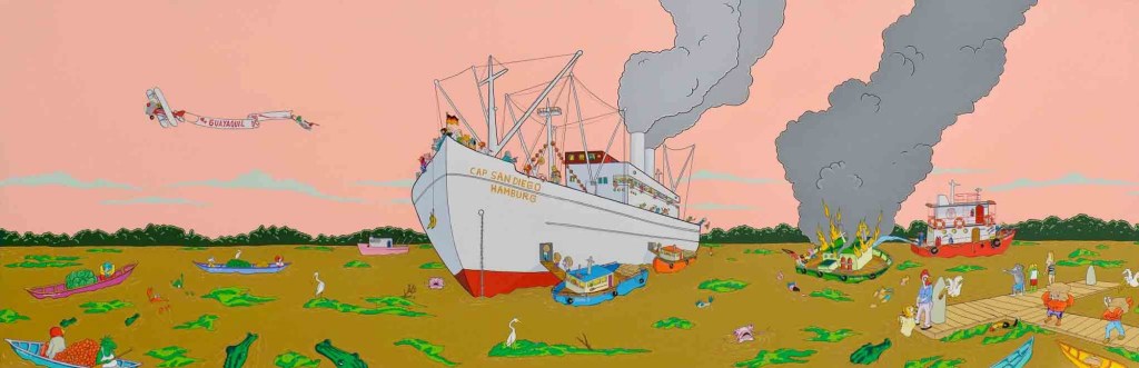 La llegada al Manso Acrilico sobre lienzo. /. Acrylic on Canvas Tríptico 130 x 400 x 6 cm. /. 51,18 x 157,48 inches SOLD