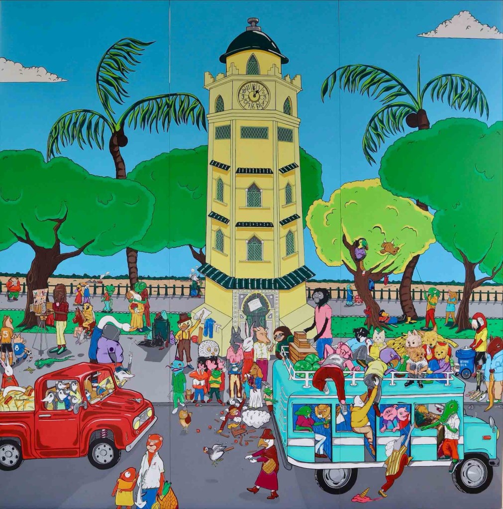 La Torre del Reloj Acrilico sobre lienzo / Acrylic on canvasTríptico 400 x 400 x 6 cm. /. 157,48 x 157,48 inches SOLD