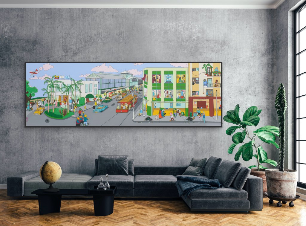 Viviendo en tiempos de la Perla Acrilico sobre lienzo / Acrylic on canvasTríptico 130 x 400 x 6 cm. /. 51,18 x 157,48 inches SOLD